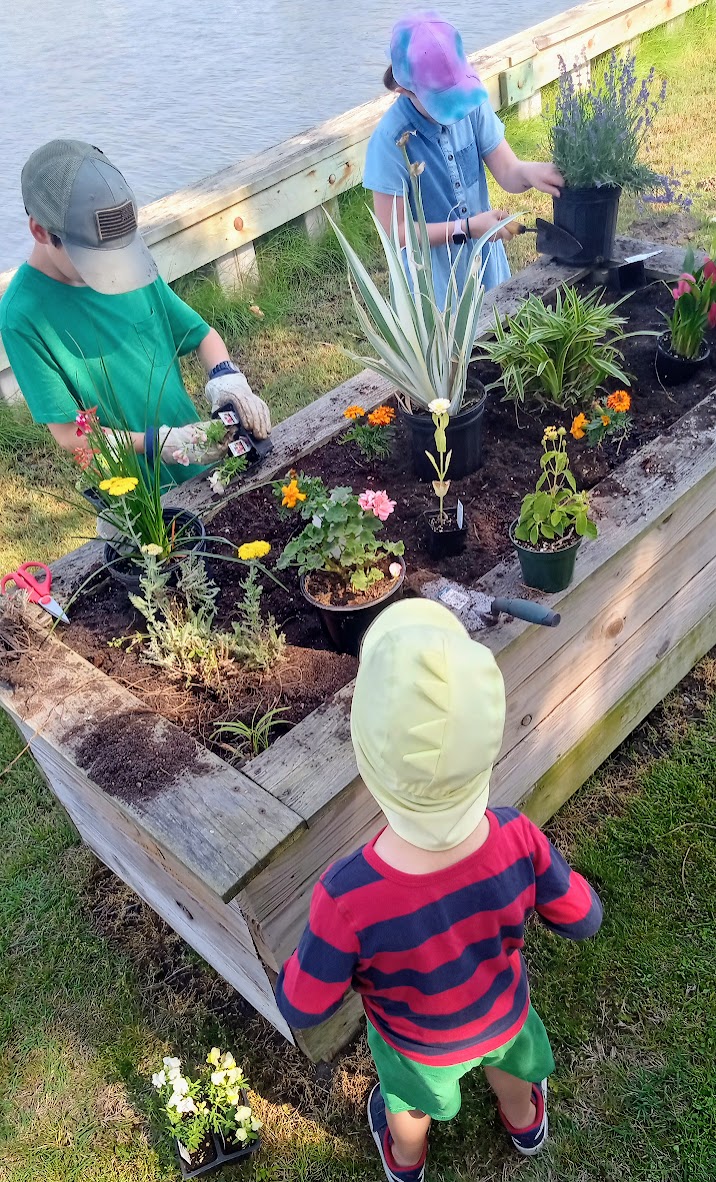 Another beautiful sight is a half bushel of Chesapeake blue crab on our doorstep and an inflatable raft tied to our porch. Our neighbors have shown care and generosity as we settle into island life with five children. Everyone enjoyed playing with the crabs as Brian prepped the boil. We had a good laugh seeing how many crabs we could pick up at once! They all like to hold onto one another.