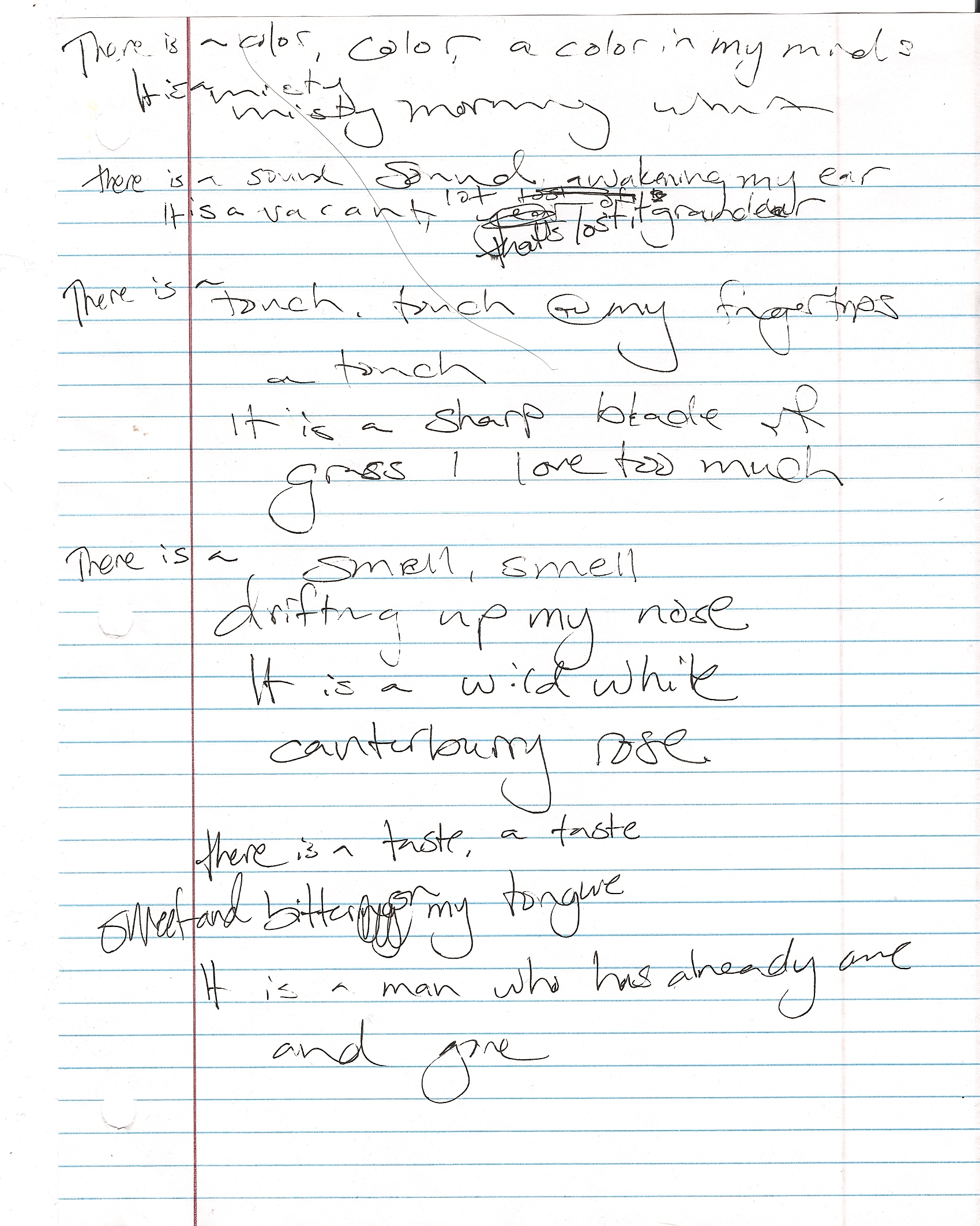 And the house blew away from her mind. There was no other moment than this one of peaceful, natural eloquence. There was no need to scrub or tidy or fill any space with remnants of dreams or half-met desires in the form of pies or piano keys. There was no need to sing old songs of lovelornity. There was no need to experience any other emotion that the one of light and slippers and green moss.
